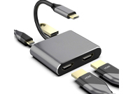 USB-C HUB 4in1 To HDMIx2+USB+PD